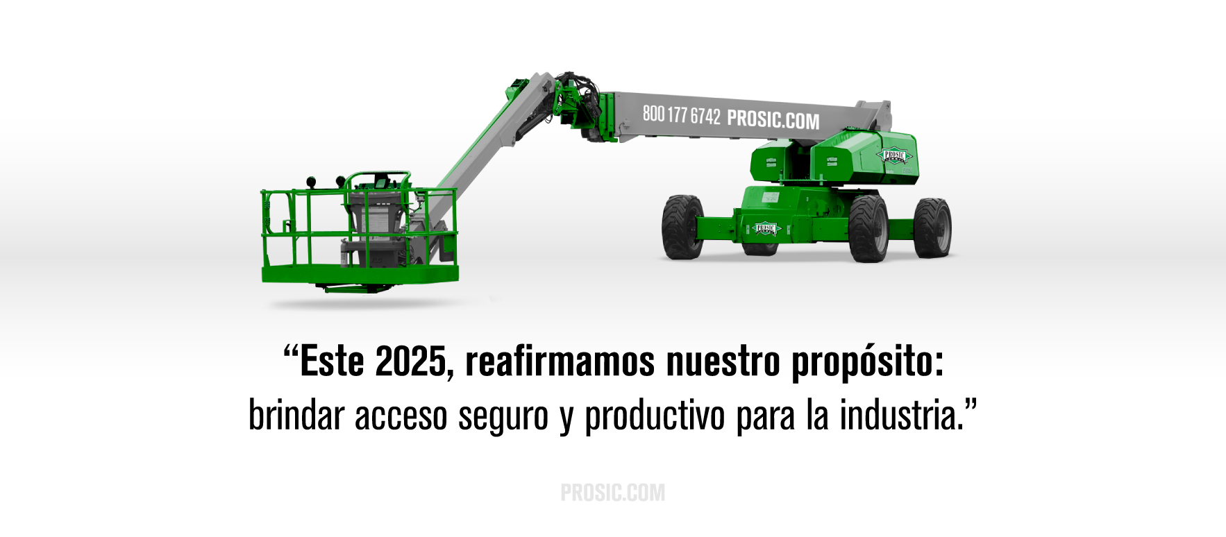 En PROSIC México renovamos nuestro compromiso con ustedes para el próximo año. Nos entusiasma seguir trabajando hombro con hombro, fortaleciendo a nuestra industria con equipos modernos, eficientes y adaptados a las necesidades específicas de cada proyecto. Además, reafirmamos nuestro propósito: brindar acceso seguro y productivo para la industria.