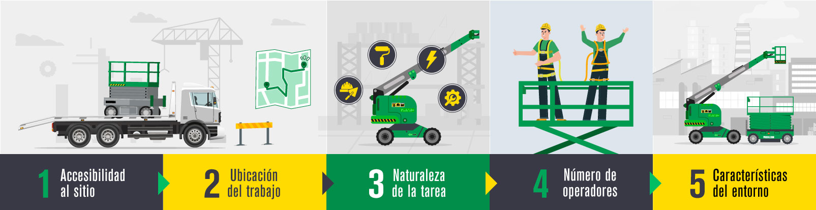 Para elegir el equipo de elevación más apropiado, es esencial realizar una evaluación exhaustiva del tipo de trabajo y del lugar donde se ejecutará. Puedes guiarte por estas preguntas clave: